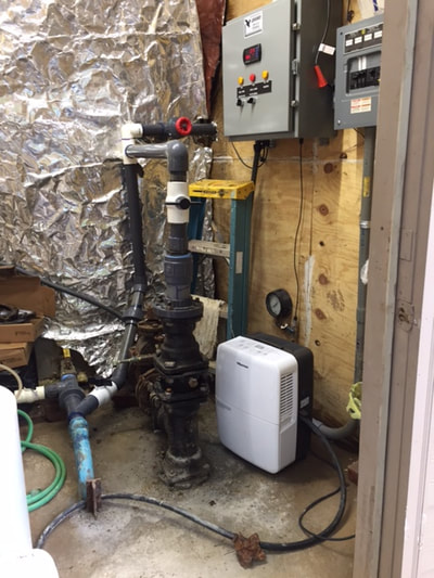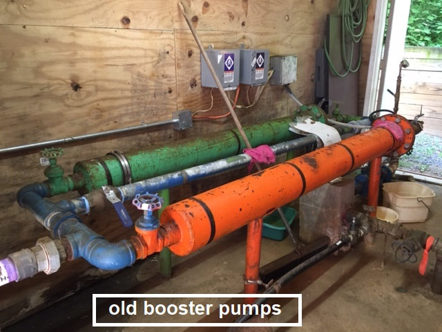June 2019 - The two booster pumps at the lower water tank on Deer Crest Heights were replaced. These pumps are used in sharing water with the upper tank on Gilliams Mountain Road. The old pumps had passed their useful life.