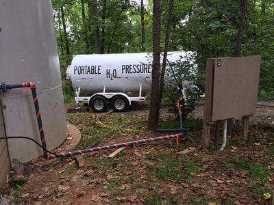 November 2017 - The Gilliams Mountain Road water tank cleaning and resealing project began in September and was completed November 22. Additional piping was installed for a temporary tank to be used during the project to minimize disruption of service. A photo gallery on this page illustrates some of the project activities and results.