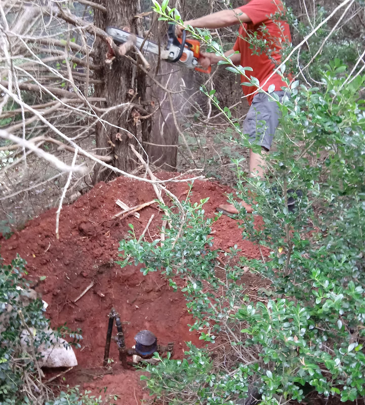 September 2018 - Extensive maintenance along Apple Ln was performed. This work was required to locate some water connections buried under overgrown bushes and trees.